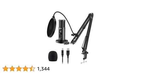 Maonocaster AU-PM422 USB Microphone Stand With Zero Latency Monitoring Professional Cardioid Condenser Microphone with Touch Mute Button and Mic Gain Button for Recording, Podcasting - Black