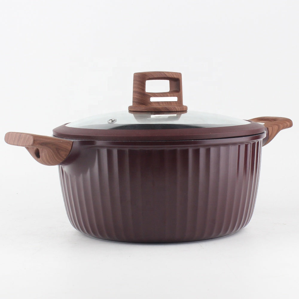 طقم أواني طهي مكون من ١٢ قطعة قدر طهي ٢٠ سم مع غطاء قدر طهي ٢٤ سم مع غطاء قدر طهي ٢٨ سم مع غطاء قدر طهي ٣٢ سم مع غطاء مقلاة عميقة ٢٨ سم مع غطاء قطعتان من أدوات المطبخ المصنوعة من السيليكون قاعدة مناسبة للطهي على المواقد الحثية الميزات الرئيسية طلاء جرانيت فاخر مانع للالتصاق السطح الداخلي لكل قطعة مطلي بطبقة مانعة للالتصاق بنمط الجرانيت، مما يضمن سهولة إخراج الطعام وتنظيفه. خالٍ من مركبات PFOA/PFOS وغير سام آمن للاستخدام اليومي وخالٍ من المواد الكيميائية الضارة. هيكل من سبائك الألومنيوم خفيف الوزن ومتين في الوقت نفسه، مما يتيح توزيعًا سريعًا ومتساويًا للحرارة. قاعدة مناسبة للطهي على المواقد الحثية متوافق مع المواقد الحثية والغازية والكهربائية والسيراميكية. أغطية من الزجاج المقوى بحواف سيليكون تتيح لك مراقبة عملية الطهي مع الحفاظ على رطوبة الطعام. مقابض مريحة مقابض من الباكليت أو السيليكون المقاوم للحرارة، لتوفير قبضة مريحة واستخدام آمن. آمنة للغسل في غسالة الأطباق (يُفضل غسلها يدويًا) على الرغم من إمكانية غسلها في غسالة الأطباق، إلا أن الغسل اليدوي باستخدام إسفنجة ناعمة هو الأفضل لإطالة عمر الطبقة المانعة للالتصاق.