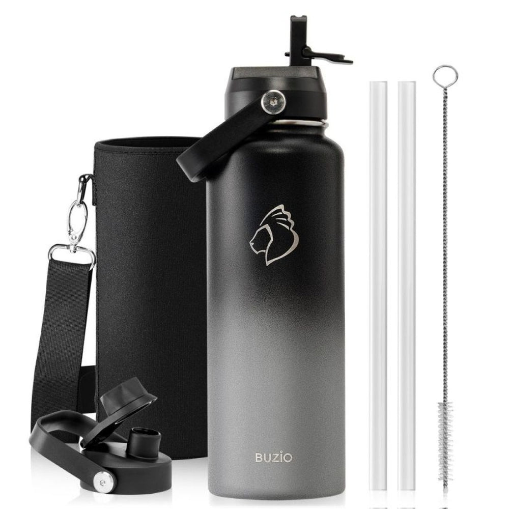 Embrace peak hydration with the sophisticated Buzio Duet Series in Shadow. This high-capacity 1.2L (40oz) bottle is built for those who refuse to compromise on performance or style. Whether you are hitting the gym, heading to the office, or exploring the outdoors, this all-in-one set includes two interchangeable lids and a heavy-duty protective sleeve with a shoulder strap, ensuring your water stays ice-cold for up to 48 hours.