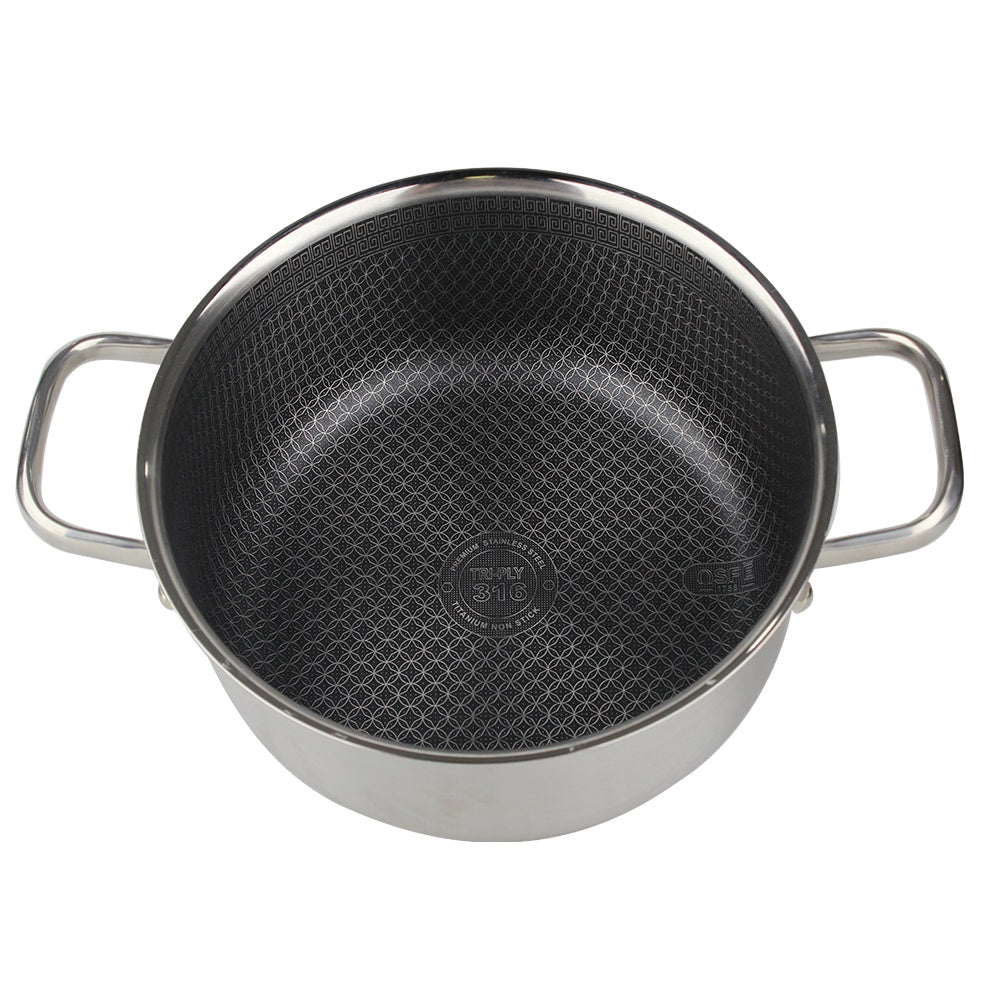 مصنوع من قلب ألومنيوم عالي الأداء بين طبقتين من الفولاذ المقاوم للصدأ الممتاز لتسخين سريع ومتساوٍ ونتائج طهي متسقة.