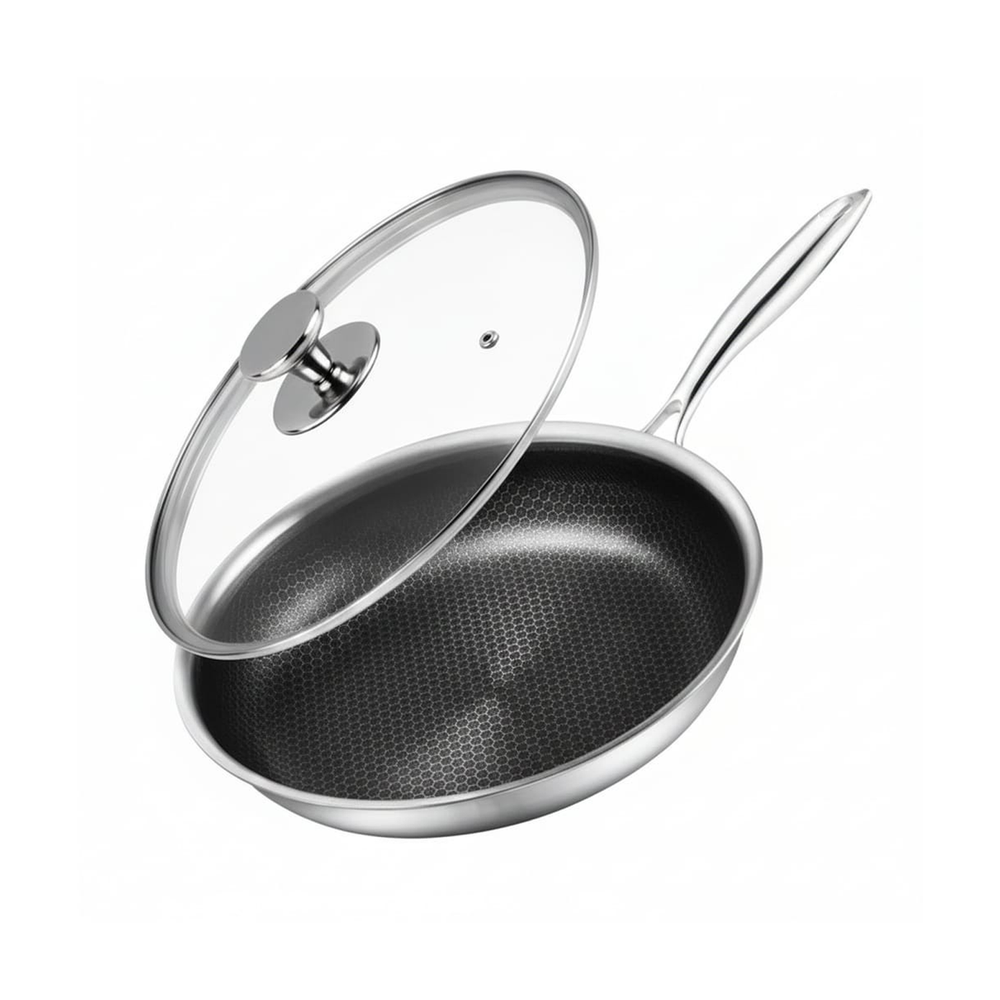 يتيح لك الغطاء الشفاف مراقبة عملية الطهي بنظرة سريعة، بينما تضيف الحافة العريضة المصنوعة من الفولاذ المقاوم للصدأ قوة وتمنع التكسر.