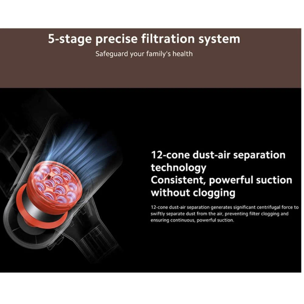 LED Digital Display – The vacuum features an LED display that shows real-time information such as battery level, current cleaning mode, and maintenance alerts.
