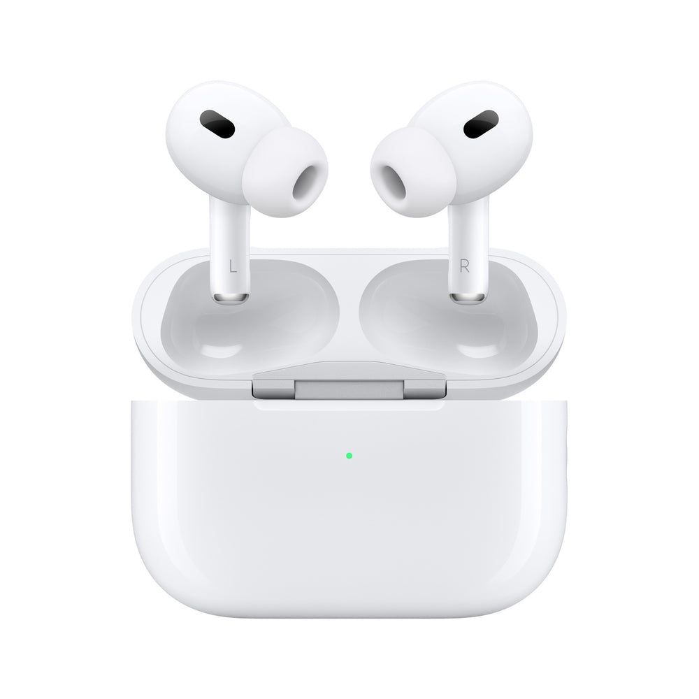 Upgrade your audio experience with the Apple AirPods Pro (2nd generation) with MagSafe Case in White. These cutting-edge earbuds are designed to deliver an unparalleled audio experience. With an inward-facing microphone and advanced speech augmentation algorithms, your voice is crystal clear during phone calls and video chats. The custom-built driver and amplifier, in conjunction with the H2 chip, minimize distortion for deeper bass and clearer highs at any volume. Adaptive Audio seamlessly blends Active Noise Cancellation and Transparency mode to provide the perfect sound in any environment, while strategically placed noise-cancelling microphones and a back vent counteract unwanted external sounds. With personalized Spatial Audio and dynamic head tracking, these AirPods immerse you in an all-encompassing auditory experience, whether you're on a call or lost in your music.