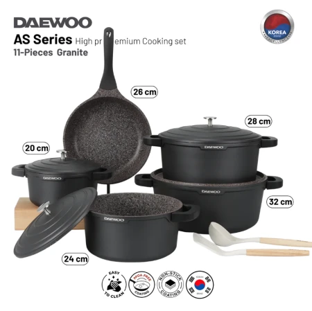ارتقِ بمطبخك مع مجموعة دايو AS. صُممت هذه المجموعة خصيصًا للطهاة العصريين الذين لا يتنازلون عن الصحة أو المذاق أو الأناقة. تجمع هذه المجموعة الفاخرة المكونة من 11 قطعة من الجرانيت بين متانة الألمنيوم المصبوب عالي الجودة والتصميم الأنيق المقاوم للخدش. سواء كنت تُحضّر وليمة عائلية كبيرة أو عشاءً سريعًا وصحيًا، تضمن لك هذه المجموعة توزيعًا متساويًا للحرارة وتنظيفًا سهلًا في كل مرة.